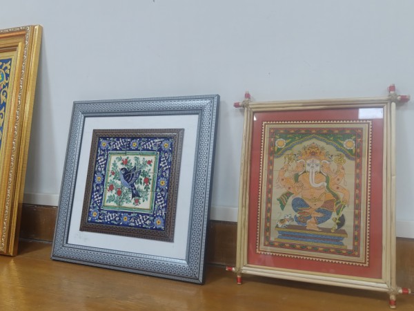 Além destes, também recebemos obras de arte com simbolismo religioso e cultural do Sul da Ásia. Uma imagem emoldurada de uma divindade hindu, provavelmente da Índia, destaca-se pelas suas cores vivas e significado espiritual. Esses presentes não apenas representam as diversas origens de nossos clientes, mas também destacam o respeito e a sinceridade por trás de cada parceria que construímos.